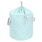 • Cestino in tessuto con manico: Il pratico cestino portaoggetti a semicerchi bianchi su menta pastello è dotato di due pratici manici in tessuto per poterlo trasportare facilmente