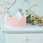 Corona in tessuto con diamanti sottili bianchi su fondo rosa antico