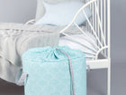 • Cestino in tessuto con manico: Il pratico cestino portaoggetti a semicerchi bianchi su menta pastello è dotato di due pratici manici in tessuto per poterlo trasportare facilmente